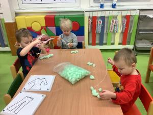 Tento týden si děti užily v Koťátkách tvoření z kaštanů na koberci a masáž chodidel na kaštanech, čímž posilovaly klenbu nohy. Využili jsme i výukové kartičky u stolku.