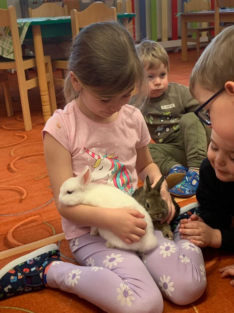 Ve čtvrtek jsme si užili celé dopoledne ve společnosti zakrslých králíčků, o které se děti s nadšením staraly. Naučily se, čím se králíčci krmí a jak se k nim správně chovat. Velkou pozornost vzbudily také mnohonožky, které přinesla paní asistentka – pro některé děti to byla úplně nová zkušenost.