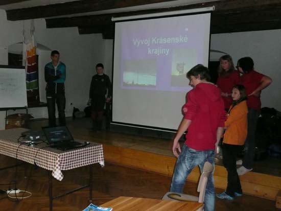 V odpoledních hodinách ještě žáci sbírali informace ve studovně a na pokojích, k dispozici jim byla literatura, internet a sami učitelé. K večeru již vytvářeli prezentace, které měli přednést v pátek ráno. I když úkol zněl náročné, každá skupina se s tím popasovala po svém a výsledky nakonec příjemně překvapili i učitelé na Rychtě, kteří prezentace chválili. Ovšem nenechte se mýlit. Hodnocení každé skupiny nebylo na učitelích, ale na žácích samotných. Ti měli vyhodnotit veškeré prezentace včetně svoji a zhodnotit, jak se jim pracovalo ve vlastní skupině. Učitelé pak zaznamenali hodnocení do grafu, které jsou k nahlédnutí.