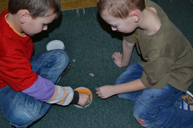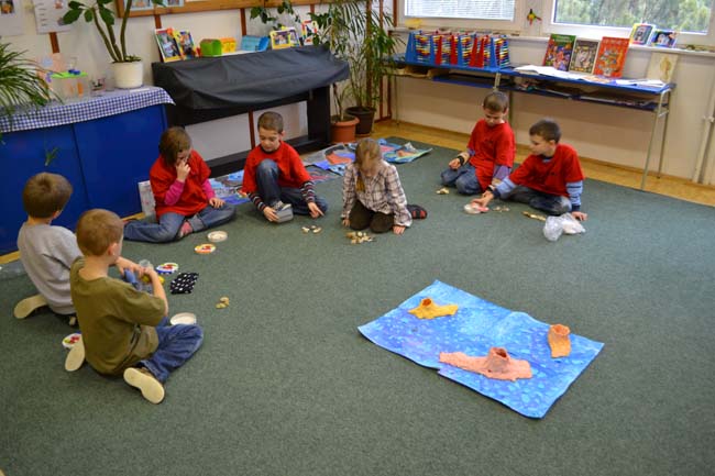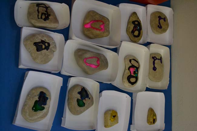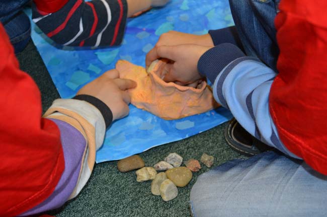 Ve středu 29. února prvňáčci pokračovali v oživení ostrova Krakatua, který postihl výbuch sopky. Znovu jsme si připomněli začátek příběhu ostrova a dozvěděli se další část. Na vyrobeném souostroví nám od pondělka láva hezky ztuhla a my jsme si předvedli, jak díky povětrnostním vlivům vznikají z lávy na ostrově kameny a půda. Kameny jsme zkoumali – tvar, barvu, velikost, tvrdost a váhu. Kameny, které pro nás byly něčím výjimečné, jsme si pojmenovali. Naučili jsme se starou indiánskou hru Pět kamenů, vytvořili nádherné kamenné pexeso a mozaiky.