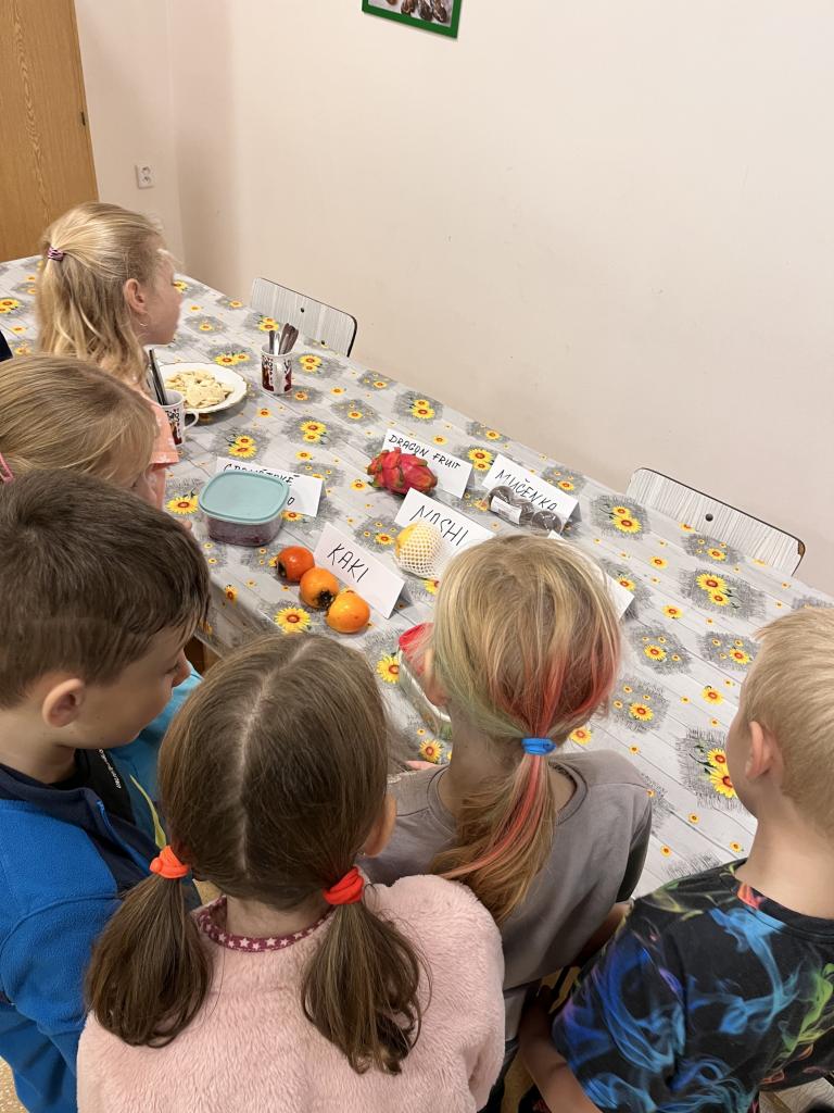 V rámci hodin prvouky jsme navštívili školní kuchyňku, kde nás čekal důležitý úkol. Očistili jsme si méně známé druhy ovoce jako kaki, nashi, mochyni, granátové jablko, mango, mučenku a dragon fruit. Cílem bylo rozlišení exotického druhů ovoce. Jako jediná peckovice vyšlo mango, malvice bylo kaki, všechny ostatní druhy ovoce byly bobule. Na závěr jsme provedli ochutnávku spojenou s hodnocením. Nejvíce se osvědčilo nashi, granátové jablko a kaki. Na ostatní chutě si potřebujeme ještě zvyknout. Více na: https://youtu.be/lgtlrHJw-l0?feature=shared