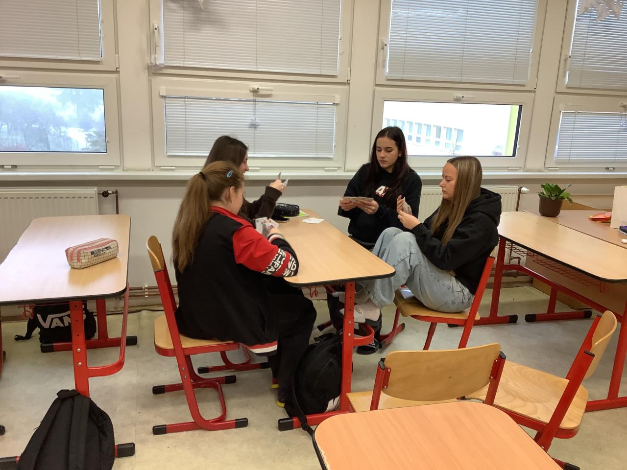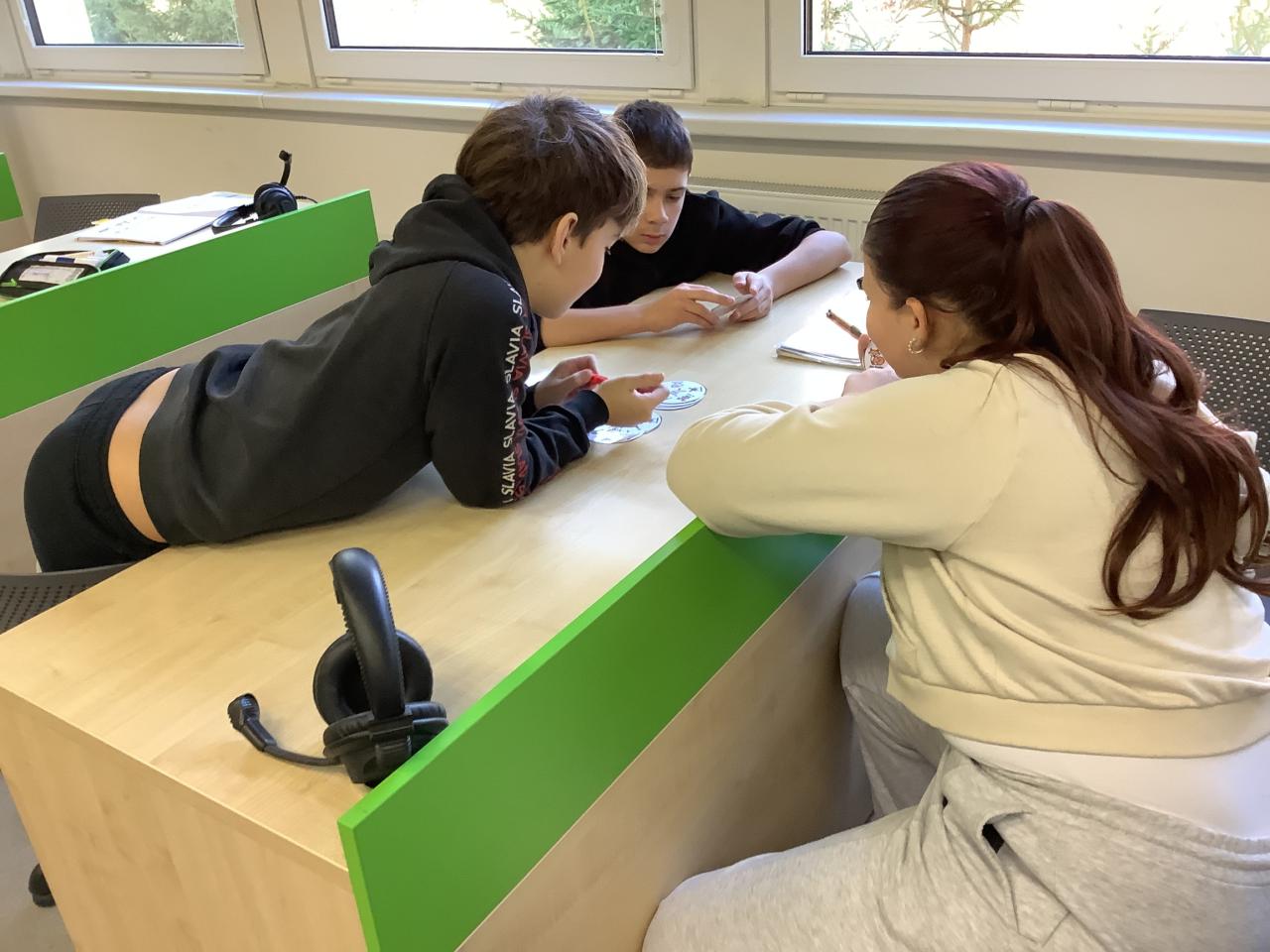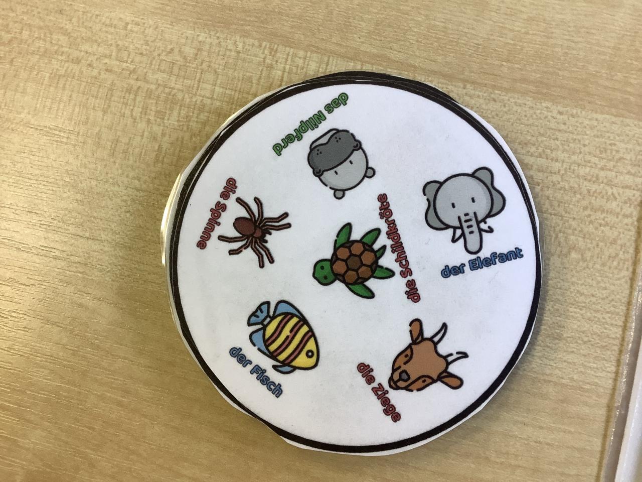 Během hodin německého jazyka využívají žáci různé edukační pomůcky: konverzační karty s otázkami, na které zvládnou v daném ročníku odpovědět, aktivitu na procvičení čísel a nově také double s názvy zvířat a kvarteto s německými slovesy.
