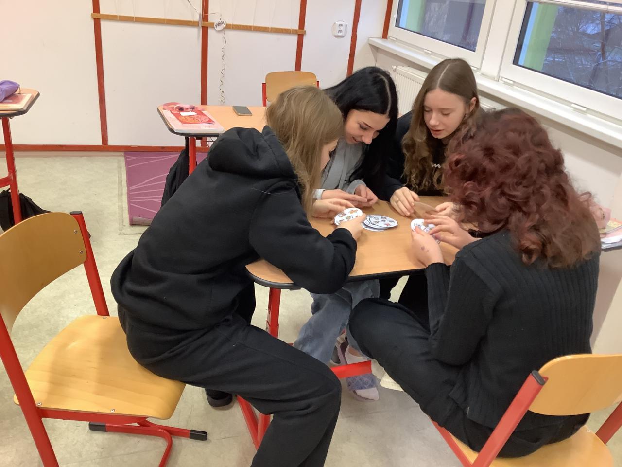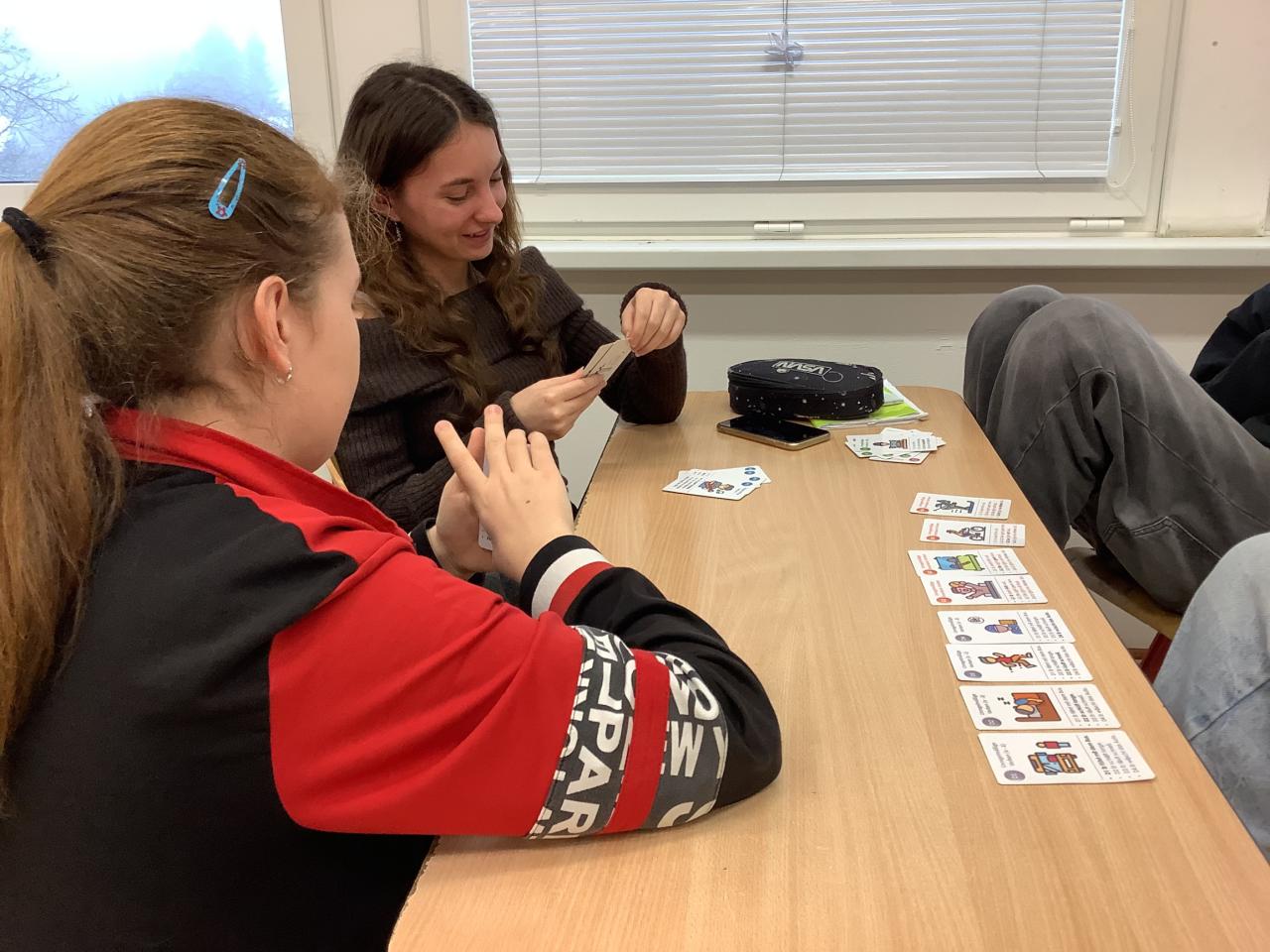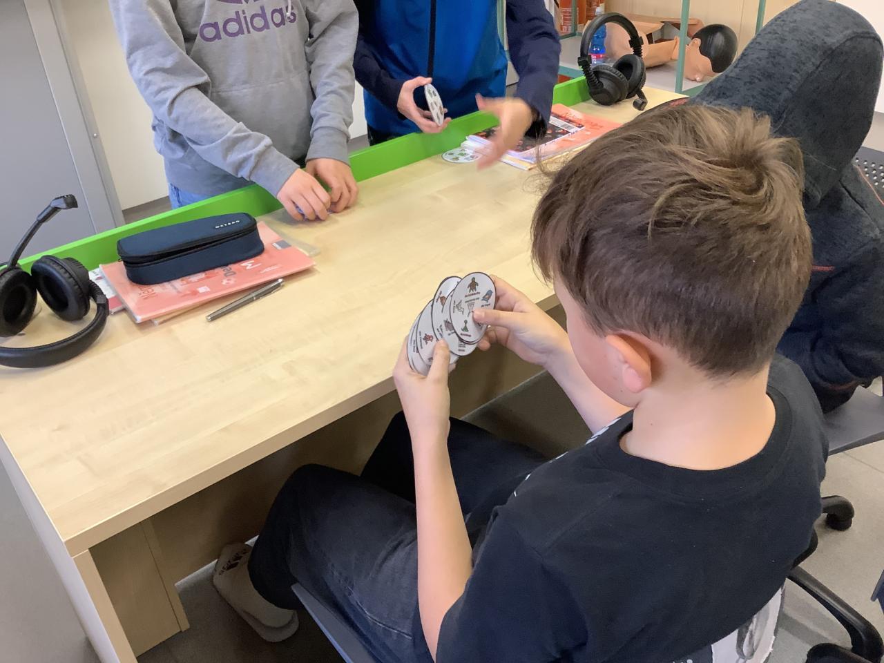 Během hodin německého jazyka využívají žáci různé edukační pomůcky: konverzační karty s otázkami, na které zvládnou v daném ročníku odpovědět, aktivitu na procvičení čísel a nově také double s názvy zvířat a kvarteto s německými slovesy.