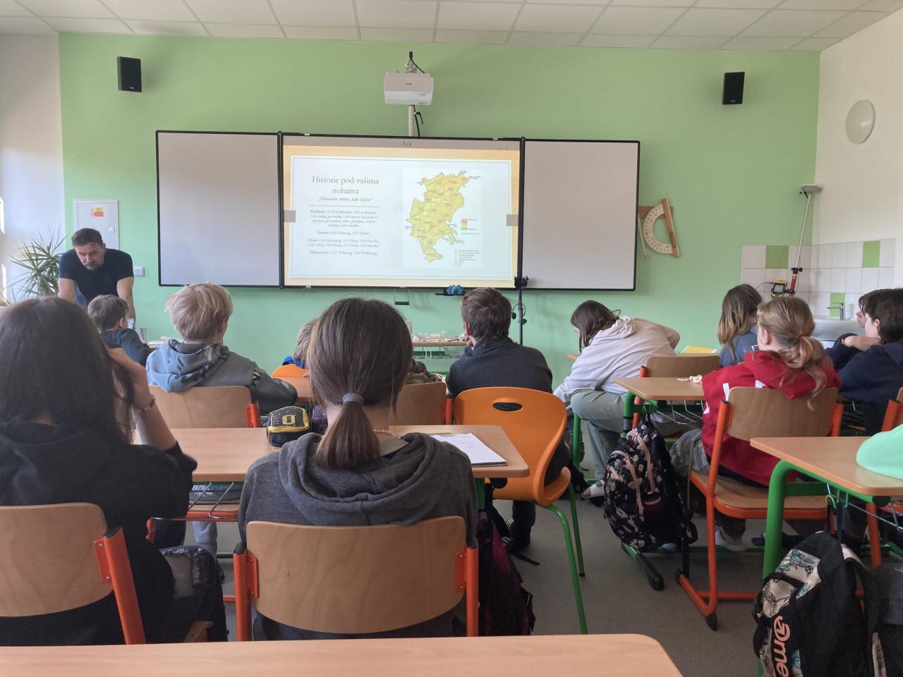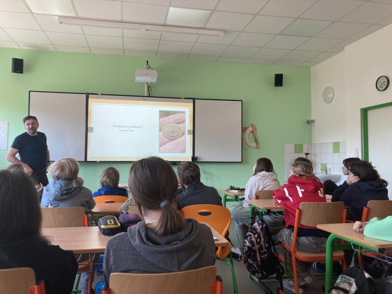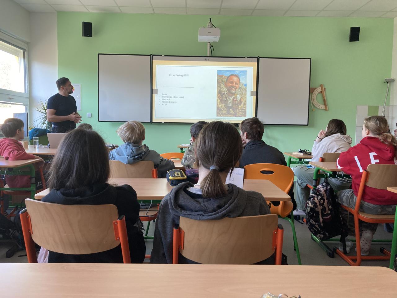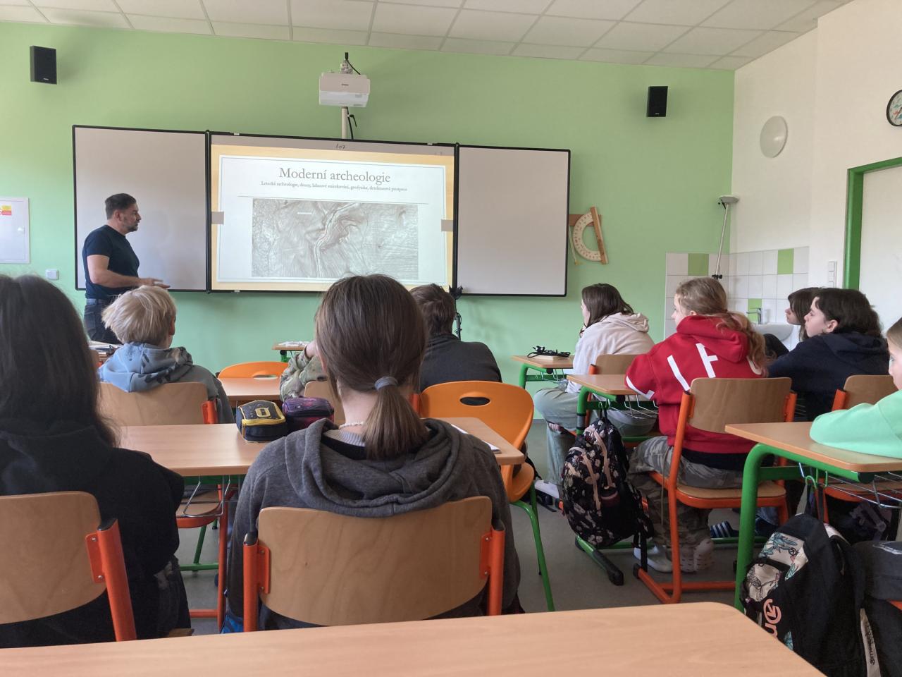 Žáky seznámil s metodami moderní archeologie. Společně si také připomněli významné moravské archeology. Součástí přednášky bylo i představení naučné stezky o zaniklých středověkých osadách, která se nachází mezi Vysočanami a Holštejnem.