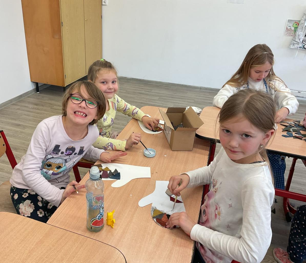 V kroužku Šikovné ručičky děti polepovaly papírové rukavice kousky látky.