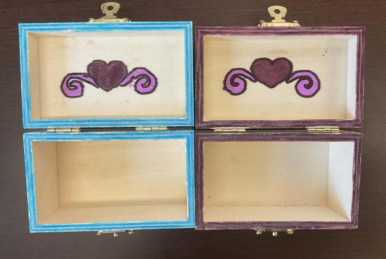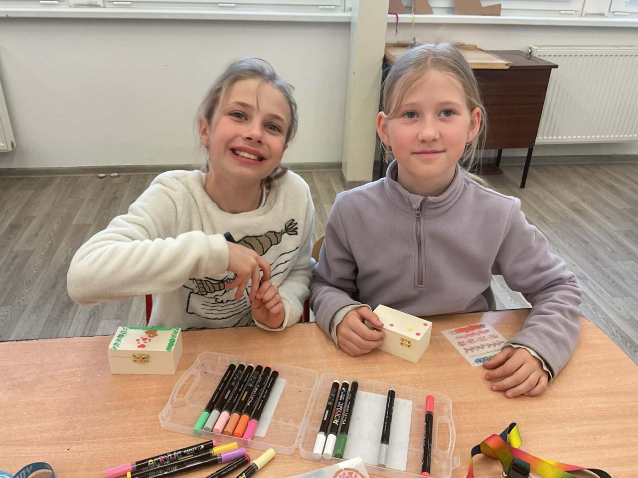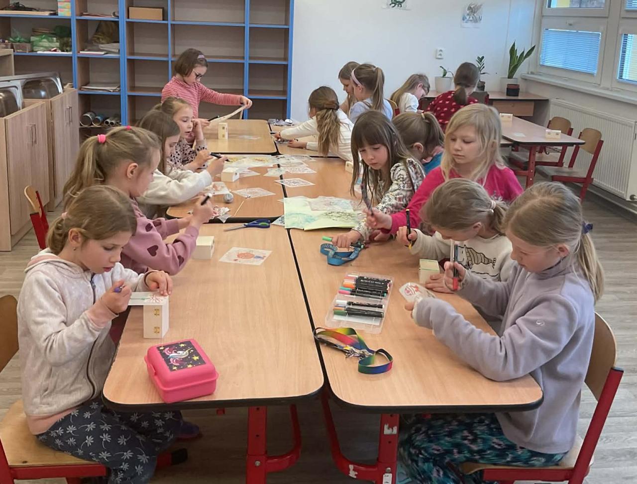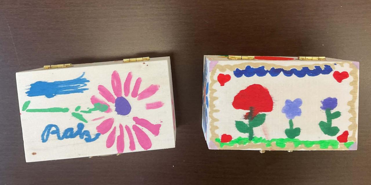Děti si zdobily dřevěné krabičky, které mohou posloužit jako šperkovnice nebo úkryt na drobné poklady.